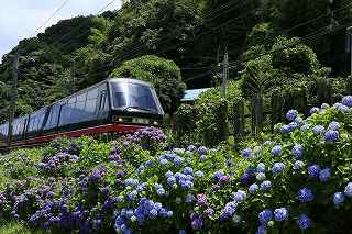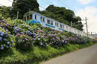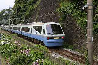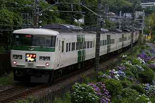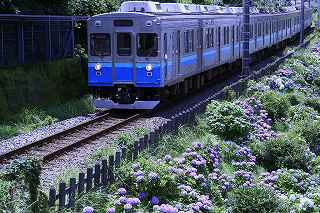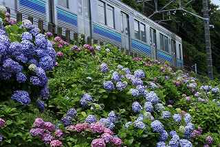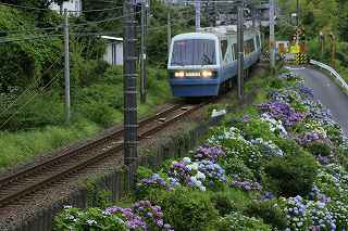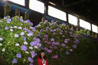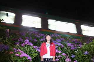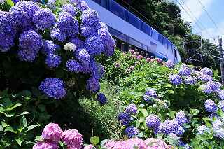 | 伊豆キャンプ・フィールドへ行く途中、国道138号線を下多賀(熱海を過ぎ、網代の手前)まで来ると、伊東線と並行して走る300メートルほど土手に、アジサイが植えられている場所がある。 毎年、写真に撮りたいと思いつつ、冷川のホタルの時間制限(18時30分入場締め切り)が有るため、立寄る事も出来ず、横目で眺めながらのアジサイ見物をしていた。 「今年は少し早めに出て、ここで撮影をしてから、ホタル撮影に臨もう!」と目論み、夕方近くに1時間弱の撮影となった。 当然、ここはアジサイと電車のコラボ。 17時〜18時台に「踊り子」号や臨時特急が2〜3本走る。 これを狙わない手はない! 現着して、予め狙いを定めてあった歩道橋に上がる。 そこには、カメラを持った若者が一人居て、自分が近づいて来たのを見て、場所を譲ってくれた。 「いいですよ、先に来られたのだから・・・。どうぞどうぞ!」 それから、電車を待つ間、彼から色々な情報を聞き出す事ができた。 地元に住む方らしく、毎年来ていて、小さい頃の話までしてくれた。 「去年のアジサイは、余り良くなかったけれど今年は結構綺麗に咲いています。」 ボランティアの方が手入れをしていて、近くのスーパーで、色つきのレシートが出たら、寄付するのだとか? 沿道に咲き、ドライバーの目を楽しませてくれているアジサイも手がかかっていることを知る。 何のイベントもないけれど、法面に見事に咲くここのアジサイはボリュームたっぷり、ドライバーを癒してくれる。 一般人の撮影向きではないかも知れないが、矢張り「撮り鉄」は来ているのだ。 「一時間くらい前は、3〜4人いたんですが、天気が悪く、露出が出ないので、帰りましたよ。」 確かに一発目「スーパービュー踊り子」はシャッタースピードが遅く、惨めに電車が流れた。 ISOを上げ、シャッタースピードが100以上になるまでF値を調整する。 「撮り鉄」ではない自分には結構厳しい試練。 でも面白い。 人間の心理なのだろうか?自分の性格の悪さなのだろうか?(多分こっち)、当初アジサイ、アジサイと言っておきながら、いざ珍しい特急が来ると、アジサイそっちのけで、電車のアップを撮っている自分!馬鹿じゃなかろうか?多分馬鹿! 「お前が電車撮って、どーするんだ!」と言う声が聞こえて来そう。 「ハイ!ちゃんとアジサイを入れて撮ります。」ごめんなさい!(と言うわけで、後日、ちゃんとアジサイを入れて撮り直しをしました)。 彼は、スマホを見ながら「次はこっちからOOがきます。多分、OO分ごろ。」と親切に教えてくれた。 我、なけなしの車両知識で、何とか彼に着いて行く。 「185系はもうすぐなくなりそう?」 「いいえ、まだもう少し先かと思います。」 「国鉄時代の車両だから、引退も近いかと思って・・・。」 彼が言うには、中央本線の「あずさ」の方が先に入れ替わるとか、185は撮り鉄の中ではそれ程人気がないとか、伊豆急黒船号のヘッドマークが、横須賀の開港だか何かと関係があるとか、短い間に撮影案内と電車情報をレクチャーしてくれました。 彼が次々と教えてくれたおかげで、18時10分頃まで、その場を離れる事ができず(彼のせいではなく、自分に意志薄弱による)、結局伊豆キャンプ・フィールドに入れる時間まで残り20分程、それなりに慌ててカッ飛ビましたが、10分の遅刻。 時間に厳しい管理人さんと、又揉めたくないので、キャンプ場内での撮影は諦める事としました。 冷川での短い撮影後、再び下多賀に寄り、ここのアジサイに感謝しつつ、モデル(といっても教え子)に入って貰い、花に花を添えてみました。 23時近かったので、パトカーでも来たらヤバそうな雰囲気でしたが、このコーナーを完結させるには、是非とも実行したかった企画でした。 撮影日:2016−6−12,6−15 静岡県熱海市下多賀にて |