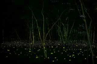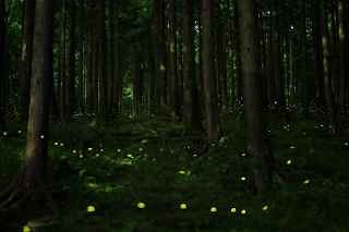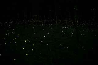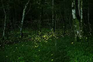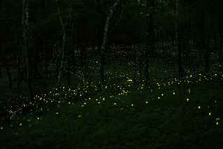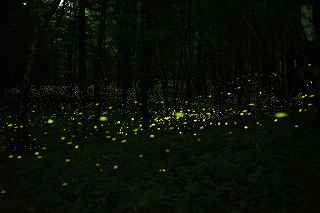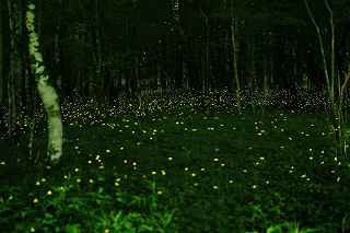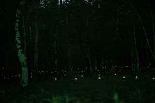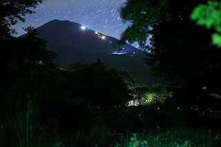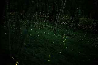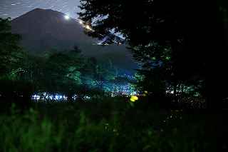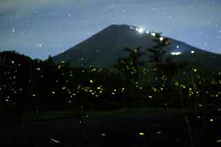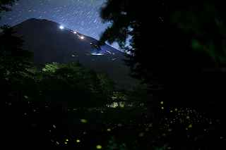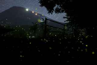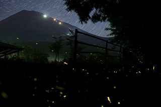 | 山中湖のヒメ蛍へ出向くつもりだったが、日曜日にも拘らず仕事が入ってしまい、出発が遅れた。 22時出発では、最低90分はかかるので23時半到着になってしまう。 人気のない別荘が点在する地だから、余り遅くに到着するのも気が引けた。 最近は、センサーライトは言うまでもなく、防犯カメラまで付いているので、へんな時間に通行して通報されても困る。 一般的にホタル撮影の場所は、厳密に言えば、どなたかの私有地である事も多いので、地主の方の気持ち次第では、とんだトラブルになっても困る。 御殿場市街を抜け、国道246号を直進すれば山中湖、左折すれば冨士山。 ホタルもアジサイも今年は一週間ほど早い、そう思うともしかして、西臼塚も? 一瞬そんな思いが頭をよぎり、246号を左折し、昔の表冨士周遊道路(現冨士山スカイライン)へ。 あそこなら道路端だし、広い駐車場もあるから、何時到着でもOK。 場所はいくらでもある。 ここは奥まで入ると本当に真っ暗なので、周りの木々の映り込みにも相当の露光が必要。 尚且つ、怖い。 かといって、駐車場近辺だと、通過車両の物凄いライトの明るさで、ヒメ蛍の光跡などぶっ飛んでしまう。 昨年は、ここでの撮影の難しさを感じていたので、敬遠気味だったのと、都合が付かなかったこともあり赴いていない。 今回、たまたま現着してみると、山開き間もない冨士山を上る登山者のライトが、線になって続いていた。 星も物凄い数が肉眼で見え、これだけでも撮影意欲が湧いた。 車を降りると、なんとピカピカではないか! ヒメの光が! いつも7月20日くらいでは多少遅いことは知りつつ、もう少し早めに来る事ができず、何度も足を運んでいるカメラマンから過ぎ去った飛翔情況を聞くだけに終わっていた。 広大な樹海の中を自由に飛び回っているので、トータルでの数は無数と表現できるものの、「密度的には低い」、と今までは思っていた。 しかし、肉眼では林のずっとずっと奥の方までは確認できないヒメの光跡が、カメラで撮影した後のモニターを拡大してみると、凄い事になっていた。 遥か奥の方で黄金の光が流れているのが見て取れる。 しかしながら、樹木が密集していて、見通しが悪いので、秩父のように黄金の絨毯には程遠い。 なるべく奥までの見通しが良いポイントを恐怖を背中に背負って捜すしかない。 はっきり見える冨士山、満天の星、そしてピカピカの光の点滅、雄大な自然界の一大スペクタクルをここで見ていると、三脚を立て、カメラの画郭を決め、ピントを合わせてヒメ蛍の光跡を撮影しようとしている自分の「せこさ」を感じてしまう。 ホタルさんに、「ゆっくりベンチにでも座って、ぼんやり眺めていた方が心が満たされると思うよ!冨士山も、あんなにはっきり見えるし、星の数も凄いだろ!」と言われそう。 そういう声を聞いた気になり、今年は「いかさま無し」の、「冨士山とホタル」のツーショットを狙うべく、冨士山が見える場所で、尚且つホタルが飛ぶ林の中に入れる所に無理やりカメラを突っ込む事にした。 残念ながら、夜間の短い時間では、ここと言う納得の場所は捜せなかったが、それでもそれらしきモノは撮れたには撮れた。 皮肉にも、別な場所で撮ったものを合成したものでない証拠は、アングルが良くない事(冨士山全体がが入らなかったり)、樹海の奥まで入って行くことが困難な為、近距離のホタルと遠方の冨士山のどちらかが犠牲(ピンぼけ)になること。 撮影の努力の割には、大した写真ではなかった。 F値を上げれば、そう言う問題は解決されるが、それではヒメの光跡が捉えにくいのでは?とその時は思ってしまった(もしかして、光が物凄く近いので、拾えたかも?と後日思った。後の祭りですけれど)。 ISOを上げて試みる方法もあったが、ざらざらのノイズばかり目立つ写真もノーサンキュー。 そんな試行錯誤を繰り返していると、一台のバイクが入って来た。 自分が駐車場を隔てた冨士山を絡めて撮影しているとは知らず、画郭にバイクが入ってしまった。 平身低頭、退かして頂いたが、又してもバイクが冨士山の裾野に鎮座。 もう一度お願いをしたところ、快く「別な場所へ行きます。」と立ち去ってくれた。 申し訳なかったが、彼も「先に来ている人が優先ですから。」と言ってくれその場から闇の中へ消えていた。 その彼と数日後再びお会いした。 残念ながら、その日は満月に近い月の光が煌々と輝き、樹木はまだらに陰影を残し、ヒメは飛ばないし、その上気温も低めだった。 手持ち無沙汰と言う事もあり、長い時間話し込んでしまった。 地元のライダーで、五合目まで行っては夜景を撮ったりしているそうだ。 勿論ホタル情報もふんだんに語ってくれた。 自分も、この場所での持っている情報を提供、遠退いていた足が彼のおかげで、再び来年も来ようと言う気になった。 可能ならば、連絡を取り合って、樹海の恐怖感を分かち合いたいものです(出来ればgome_chiさん、シグ