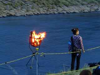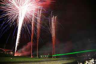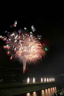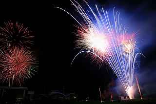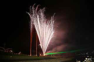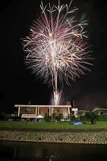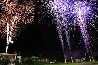 | この日は、昨年天候が悪かったため、リベンジしようと、「足立の花火」を予定していた。 スカイツリーをバックに、花火自体は小玉ながら、いい感じの夜景になることを目論んでいた。 ふと、昨年何時にW氏と待ち合わせ、何時に花火会場に着いたのか 、自分の観覧記を見てみた。 なんと12時過ぎには到着し、残り一台のパーキングへかろうじて 入れた記録と記憶がよみがえった。 流石に東京、車での都内入りは相当に早く、厳しい。 しかも昨年は天候が悪く、出足は鈍かった筈。 今年は先ず雨の心配は無い。 もっと条件は厳しい。 同じ10時出発なら「須坂花火」(長野県北部)は、篠原煙火店さ んの花火だから見る価値は有る。 但し、チョッと遠すぎ。 23日開催歩花火大会自体が多くなく、止む終えず真岡夏祭り花火 大会へ行くことにした。 花火仲間に聞くまでも無く、カメラマンがこぞって行くような花火 大会ではない。 グーグルの航空写真を見ても、市役所はじめ、いくつかの公共の建 物が建ち並ぶ真っ只中が打ち上げ場所になっている。 五行川と言う川を神輿が渡るという案内で、浅い川だと予測がつく 。 勿論川幅だって高が知れているだろう。 一体どこで打ち上げるのか不思議なくらい(帰宅後地図で調べる限 り市民公園か?)。 12時出発、東北道、北関東自動車道真岡ICまで2時間半、ラッ キーだった。 いつもならテラスモール渋滞で、家を出て直ぐ車が動いていないの だが、どういうわけか平日並みの交通量。 横浜新道も戸塚警察を先頭に藤沢バイパス終点(影取)から渋滞し ているのだがそれもなし。 14時過ぎ、真岡インターを降りてから市内が少し詰まっていたが 、 もう少し早く出て14時からの交通規制に掛からなければ問題なか ったかも。 パーキングは帰りの渋滞を考えて少し遠目の真岡東中学校グラウン ド。 真岡市役所まで約一キロ歩く。 五行川の土手の中央部分は既に埋まっており、 急な斜面しか空いてない。 元々狭い場所故、市役所の駐車場や歩道もシートがビッシリ敷かれ 、足の踏み場も無い。 川の対岸に手筒花火より径の小さい筒が置かれていたが、その後ろ には家があり、更に後ろには、こんもりとした樹木がしげる。 一体、大きめの花火はどこから打ちあがるのか分からなかった。 結論から言うと何と建物の後ろからだった。 神奈川新聞の花火を赤レンガ倉庫を全景にして撮影するのと訳が違 い、失礼ながら、単なる障害物でしかない。 最悪な事に、自分が座った場所がその医師会館の建物で、 花火の打ちあげの筒どころか、下部をを完全に隠す位置だった。 初めての場所だし、花火の質を問うものでもなし、あっさり観念し た。 打ち上げ箇所は3カ所、五行川川べりに置いた筒は、手筒を小さく した高さ1〜2メートルほどのお飾り。 町で売っている、花火セットの中に混じっている打ち上げ花火のや や大きめ程度のもの。 その少し後方から、時々高さ10メートルを越える火柱的花火が上 がる。 建物後方の花火は結構同じ種類が多く、単調。 5号〜6号くらいか、距離が判らないのでそれより大きかったらゴ メンナサイ。 花火の大きさ(高さ)より、自分の撮影した場所では、幅が有り過 ぎて24ミリでは収まらない。 16ミリで入るかもしれませんが、3カ所打ち上げに時間差があり 、上手くまとめるには多重露光が必要。 グリーンのレーザー光線も時々走るけれど撮影では殆ど写らず。 「夏祭り」プラス「花火大会」と言うのはどちらがメインになって いるか、各地様々なのだろうが、真岡の場合9台の山車と川の中に 入る神輿が呼び物なのかもしれない。 地元の人が楽しむには、大き目のお祭りだし、真近で見られる親し みの有る花火だと思う。 最近流行の曲を含めて、音楽効果を取り入れ(時々CDが飛んでい たけれど)、尚且つレーザー光線が花火の煙を突いて、グリーンに 光る。 いつも、「尺玉がどうした」、「スターマインが何ヶ所打ちだ」、 と騒いでいる大きな花火大会と異なり、夏を感じ、真岡に住んで良 かったと思える、そういう地元の花火大会だと感じた。 川の中を練り歩く神輿の動画を添付いたします。 ⇒ ここをクリック 撮影日:2016−7−23 栃木県真岡市荒町・真岡市役所前五行川土手にて |
