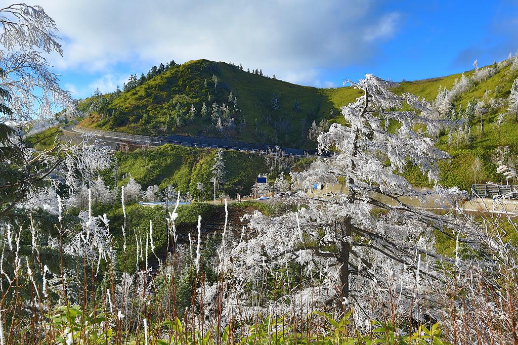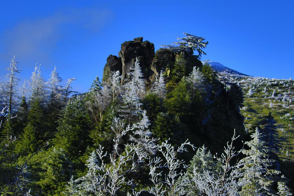 樹氷と言ってもいいのか?樹氷は水滴が凍ってできる氷だから、雪