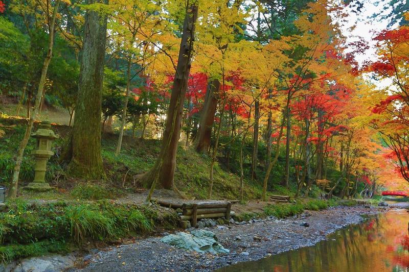 神社の東側を流れる宮川の両岸に植えられた人の手が加えられた「もみじ」など、