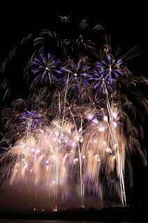 いつも花火大会の多くを共にするK氏は、1日の神奈川新聞、2日3日長岡、4日酒田、5日伊那と追っかけをやる。 私の写真の被写体の主なものは、「蛍」と「花火」だ。 −−−−−− 本分を引用しました。 −−−−−− 撮影日:2012−8−3 19:15〜21:10 |