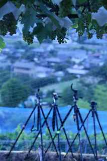 | 1.ぶどう畑の農道が撮影場所 | 2.勘が外れて、打ち上げ場所からずれました |