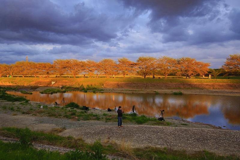 この川沿いの土手に三脚を立てたカメラマンは20人ほど、