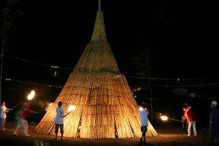 | 9.松明を持って歩いて来ました | 10.点火準備完了 |