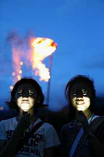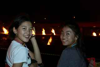 | 再び、辰野のほたるに続き少女2人が登場。 南部の火祭りは、単なる花火大会ではない。 起源を江戸時代初期の元禄時代に遡る。 簡単に言えば、「盆の送り火」なのだ。 当然灯籠流しもあるが、この祭りの目玉は、「投松明(なげたいまつ)、大松明(おおたいまつ) そして富士川の両岸2kmに置かれた百八つの焚き木に火をつける百八たいである。」 この幽玄の世界は、日本の歴史・伝統を弥が上にも感じざるを得ない。 以前、諏訪湖湖上花火に足を運んでいた私も、ここ3年は、南部火祭りと決めている。しかも、目的は、二尺玉を富士川沿いの百八たいとコラボすること。 しかし、残念な事に二尺玉を撮るには600m以上川下へ行かないとカメラに収まらない。 すると、火祭りの雰囲気など全く味わえなくなり、「遠くで火が燃えてるなぁー。」程度。 今年は割り切った。二尺玉の花火は別な大会でも撮れるのが、古式ゆかしい伝統行事はここだけのものである為、メイン会場に陣取り少女達と行事を追いかけた。 撮影日:2012−8−15 山梨県南部町 |