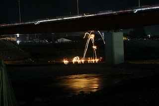 | 7.南部橋の下でも | 8.僧侶の読経のあと大松明に点火 |