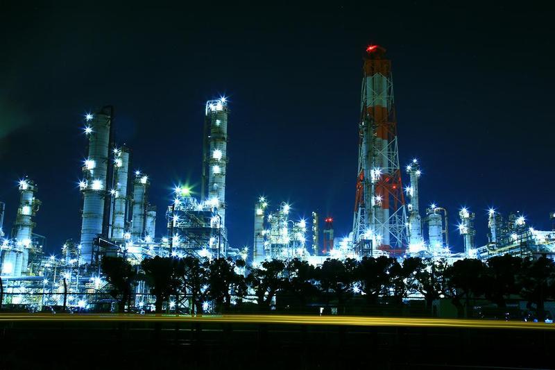 工場夜景は近藤師匠からのご指導を受けたものだが、個人的には無機質な情景をあまり好きになれない。当たり前だが、臭いし音もうるさい。しかし、一端それを撮り始めるとなかなか面白い。前回、工場夜景を撮影したのは近藤師匠と出かけた静岡県吉原の岳南鉄道周辺。一昨年の11月だから、もう二年前となる。車中で少しだけ仮眠をしていたら、あたりはあっという間に暗くなっていた。公園内は、ところどころに街灯はあるが、懐中電灯は必要だ。曲がりくねった道を公園の突端まで歩くと釣り人が3名ほどいたが、カメラマンはゼロ。鹿島石油のタンクを右手に、鉄鋼コンビナートの巨大クレーンを左手に見ながら、とりとめのなくシャッターを押し続けてしまった。煌々と明かりのつく岸壁では作業をしているのか、大きな声でスピーカーで何かを言っている。時折サイレンが聞こえたり船のエンジン音も聞こえ、ここには休みがないのではと感じた。
