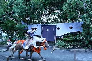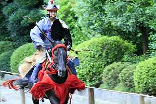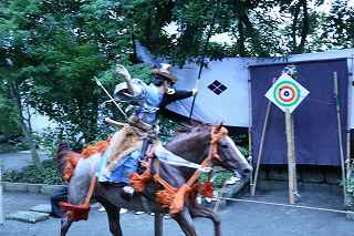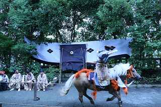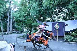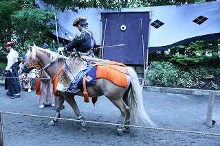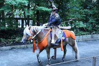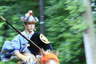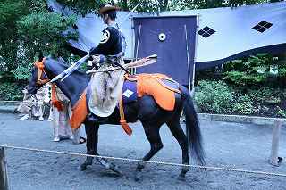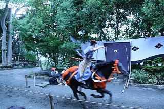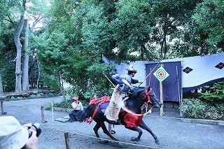 | 寒川神社の三大祭の一つ例祭(寒川神社で最も由緒ある祭典)の前日に行なわれるのが流鏑馬です。 寒川神社と言えば、師匠が取材している「干支ねぶた」の写真が数年掲載されていて、私にとっては他人の家に土足で上がる感覚が有ります。 しかし19日は師匠が夜勤の出勤日で、14時の流鏑馬開始には間に合いそうにも有りません。 また先日16日に開催の鎌倉八幡宮の流鏑馬は、観客が多くて、とても混雑するそうで、まともな写真が撮れないらしいです。 ではなぜ今回の流鏑馬撮影に臨んだかと申し上げれば、ただ単に「瞬間を切取りたかった」だけ、弓から放たれた矢が的に当った所が撮影できれば「ヤッター」と喜んで帰路に着く単純な人間。 師匠が「龍の彫り物」「吊るし雛」「各地イベントや祭典」等日本文化や伝統芸能を、丁寧にボリュームたっぷりにご紹介する領域には到底到達不能。 今回は他人の褌(ふんどし)で相撲(流鏑馬)をとって(撮って)参りました。 狭い所に見物客とカメラマンが二重三重の列を作っているため、どうしても前列や隣の人物そしてカメラが入り込んでしまいました。(マスコミ関係者が羨ましかったです) 撮影後記 撮影日:2012−9−19 14:00〜16:00 |