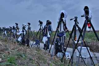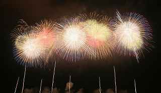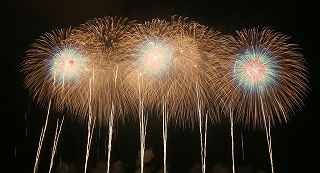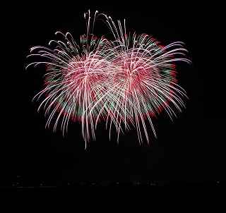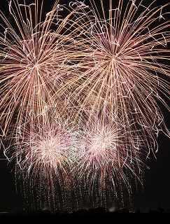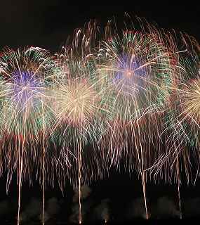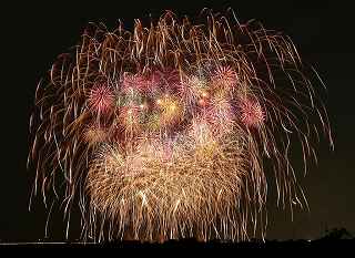 | 川幅日本一・打上げ総数15000発、三尺玉2発、二尺玉同時打ち、尺玉三百連発、日本一のラスト・スターマイン『鳳凰乱舞(おおとりらんぶ)』・・・などと、凄まじいキャッチフレーズが並ぶこの大会は、埼玉県鴻巣市で行なわれるものである。 今年の変更点は、打上げ場所が有料席にほぼ並行になった事。 消防法の関係も有り、その長さは少々縮んだが、川を跨ぐ手間をあえて実行。 裏での撮影もバッチリだった。 プログラム全体はあまり変りばえはしなかったが、三尺の2発目が打上げ業者のさじ加減で、少し間をおいてくれたのかやや独立していた。 「鴻巣花火」の注目度は高く、巨匠とも言われる花火撮影家から私のようなド素人まで、大体、感想や期待は同じ。 しかし、それは写真に撮ろうとするゆえの希望で有り、一般の見物客にはこれで良いのかも知れない。 鴻巣市は人口12万人、神奈川県海老名市とほぼ同じ、藤沢市の3分の1であるが、商工会青年部・・・簡単に言えば、地元中小企業経営者の子息(息子や娘)たちがお金集めをして開く花火大会なのだ。 その意味では、おそらく集金力日本一の集団と言っても過言ではない。 この景気が思わしくない時に、「尺玉一発、10万円お願いします」と、言われて、ホイホイお金を出してくれる企業がどれだけあるだろうか? 三尺玉の相場をご存知か? ガードマンの日給は2万円に近いらしい。 トイレのレンタル料金は、処理費用も含めれば、誰しも喜んでする仕事ではあるまい。 警察は多くの人が集まる大会を好むだろうか? 消防の規制も厳しい。 その他多くの困難を乗越えて毎年の花火大会の開催である。 『〇〇日本一』・・・の好きな鴻巣の市民感情は、江戸時代から380年も続く「ひな人形の問屋」の産物でもある。 春先に行なわれる「日本一のびっくり雛壇」もそのひとつであった。 撮影日:2012−9−29 |
