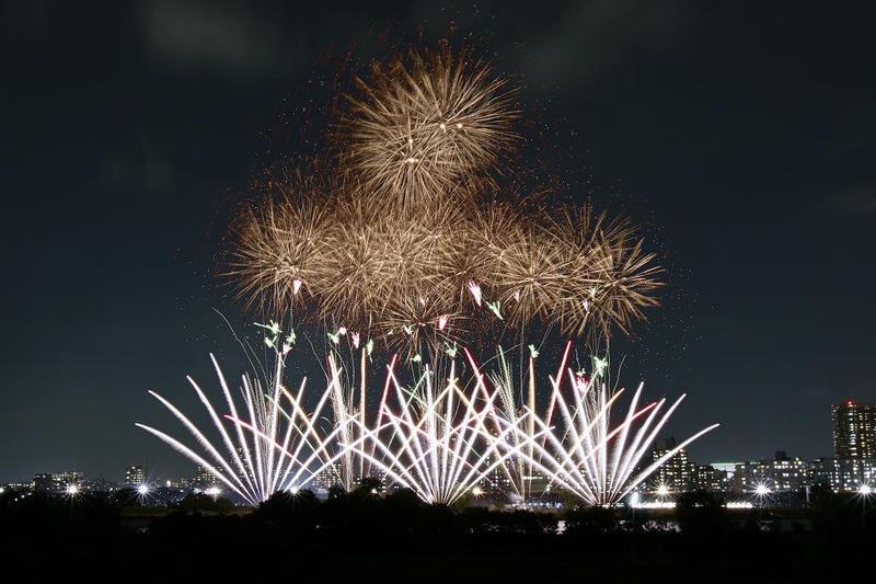 川口花火大会は、昭和27年から34年まで8年間、川口商工会主催の「荒川納涼花火大会」の60年ぶりの復活だそうだ。それを復活と言うのか、余りにも間隔が空き過ぎているのでピンと来ない。その頃の関係者がご健在なら、既に80歳を優に越えている。何はともあれ、第一回である事には変わりは無い。打ち上げ数7000発、最大4号、担当は神田煙火工業さん?。その程度の情報では、二の足、三の足?を踏んでしまう。