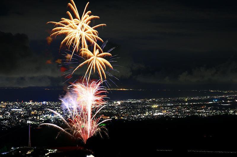 <駿河湾を背景にした花火>